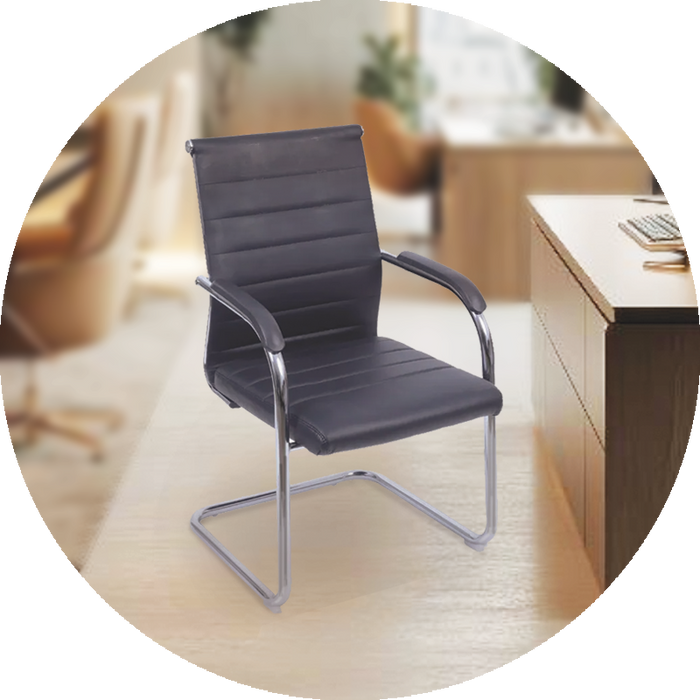 Cadeira de Escritório empilhavel Arezzo S/Bco Estofado em PU Preta Estrutura cromada