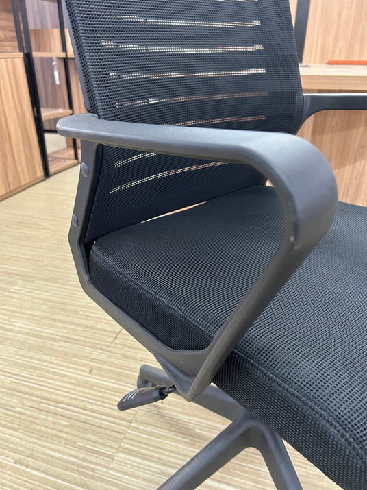 A cadeira executiva madrid possui encosto em tela com estrutura fixa no fundo, também conta com braços, base giratória, altura regulável e mecanismo relax para inclinação do encosto.