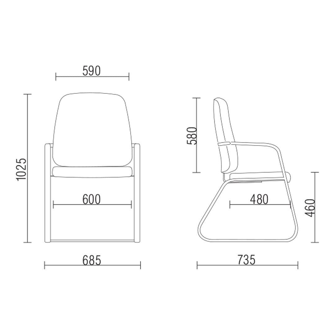 Estrutura fixa do tipo balanço ou em "s", na qual o assento fica em suspensão, manufaturada a partir de tubo de aço carbono de seção elíptica. apoia braços manufaturados em poliuretano integral skin, fixo com textura, de excelente resistência ao alongamento e ruptura, bem como fator conforto e alta densidade, com borda frontal curvada para baixo.