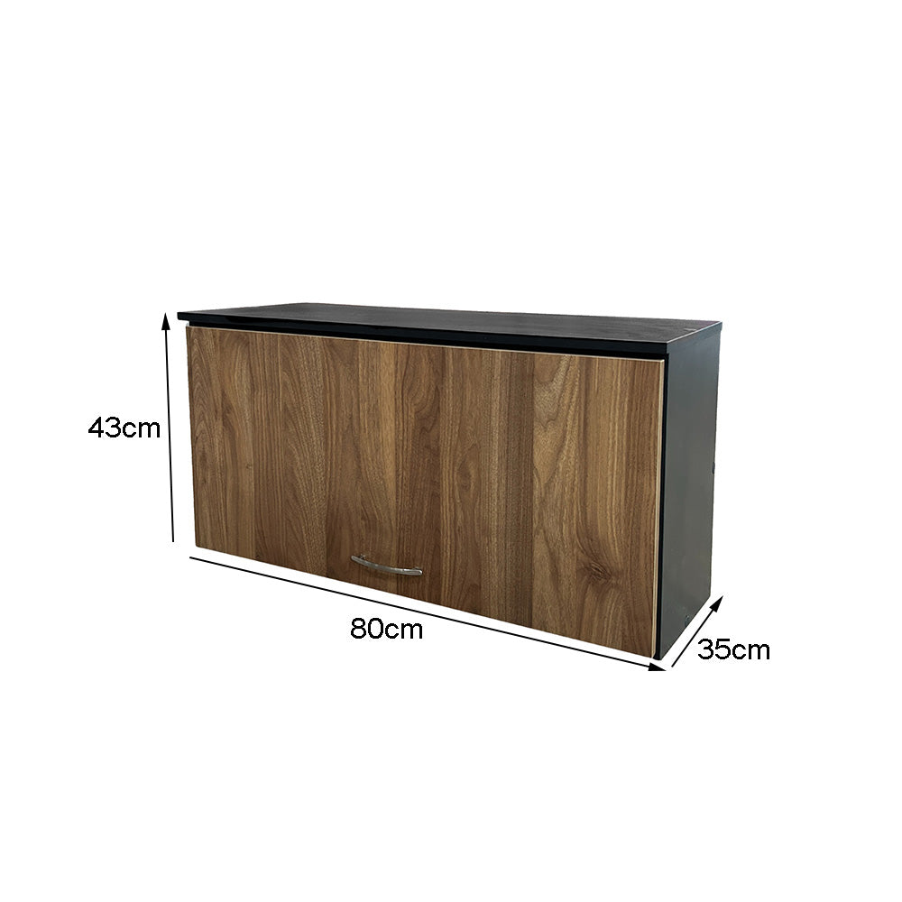 Armário Aéreo com medidas externas de A: 43cm x L: 80cm x P: 35cm.