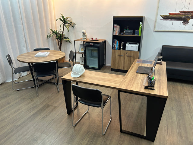 Composição que une conforto, eficiência e presença, ideal para escritórios de engenharia, arquitetura ou áreas técnicas. Cada elemento do espaço é pensado para facilitar a rotina, otimizar o tempo e reforçar a credibilidade do seu trabalho diante de clientes e parceiros.