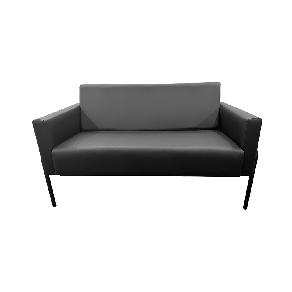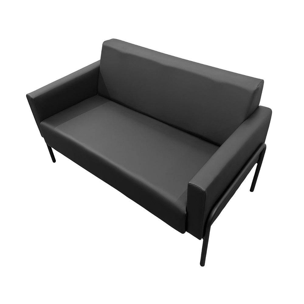 Sofá de 2 lugares estofado em courvin com base metálica preta.